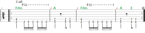 A c-riff (24:18) a fenti a-riff akkordjait hozza direktebb formában, simán kvintekkel (felette szól a fődallam).
