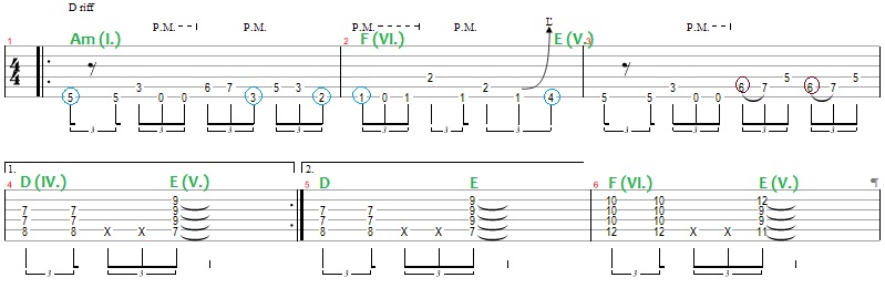 Ehhez a témakörhöz több részt is tervezek; ez a mostani szóljon elsőként egy rockos/metálos riff átvilágításáról. Nézzük meg, hogyan építkezik, milyen vonatkozásban használja fel a klasszikus összhangzattan elemeit/szabályait!