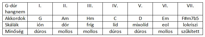 Ha mindezeket összevetjük a hangnem fokaira épülő akkordok minőségével, láthatjuk is az összefüggést: