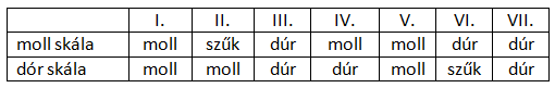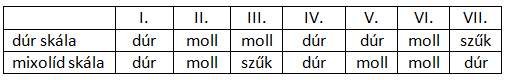 Érdekesség még, hogy az V. fok mollos, ezért nem is tekinthető igazán domináns akkordnak (inkább a VII. fokot érezzük annak).