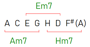 ➠ Tornyozzunk most további terceket az Am7 akkordra: