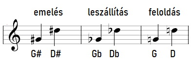 • A módosított hangok szintén emelhetők és mélyíthetők, melyeknek leginkább később, az alterált akkordoknál lesz jelentőségük: pl. egy fisz hang felemelve fiszisz lesz, a gesz leszállítva geszesz, stb.